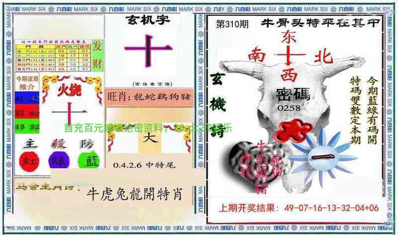 309期:九肖【蛇鸡狗猴羊龙牛虎】开:鼠06